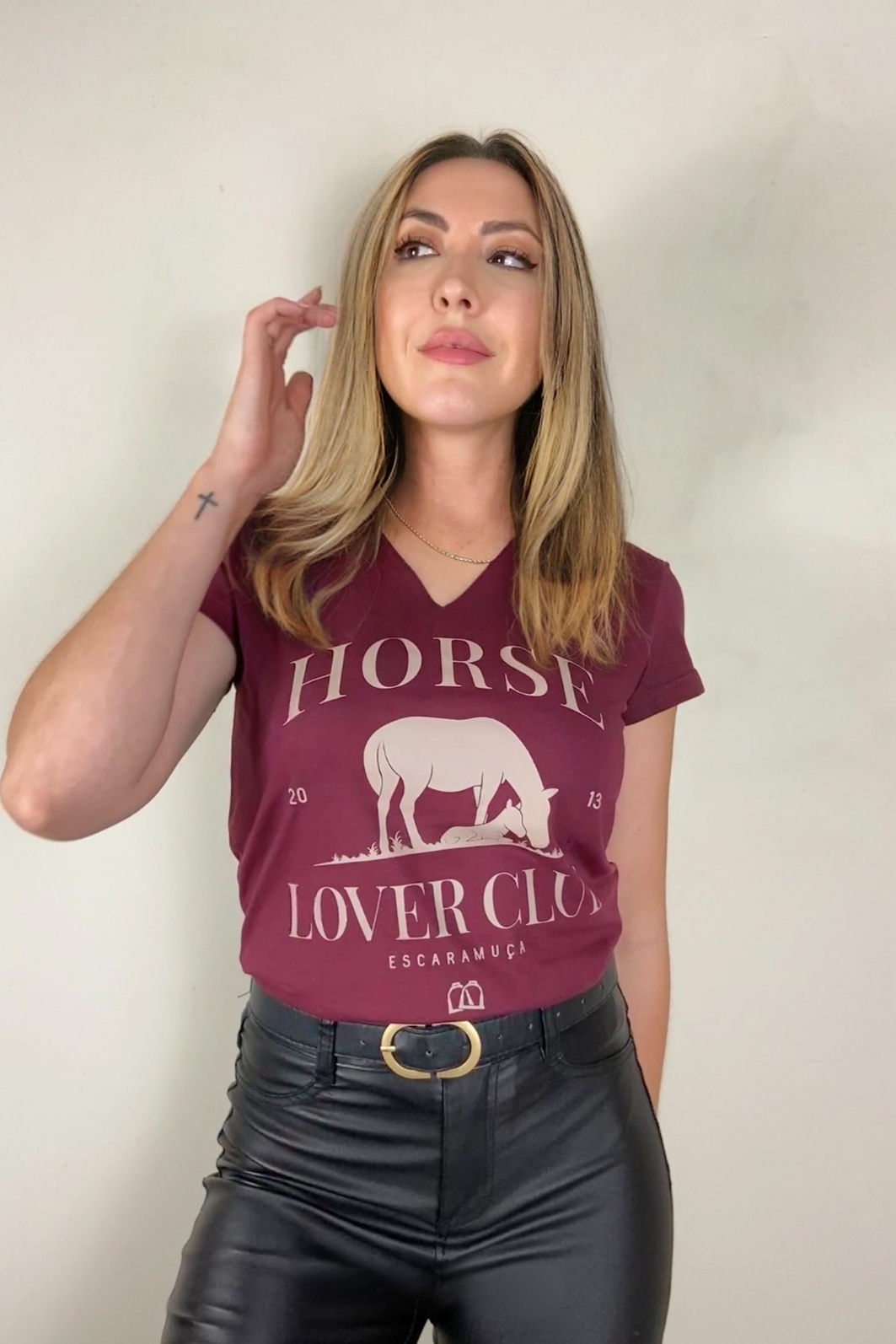 Um estilo leve, com personalidade e cheio de amor pelo universo equestre. A camiseta feminina “Horse Lovers Club” traz uma estampa vetorial delicada e cheia de atitude, ideal para mulheres que se identificam com a força, a liberdade e a sensibilidade do mundo dos cavalos.