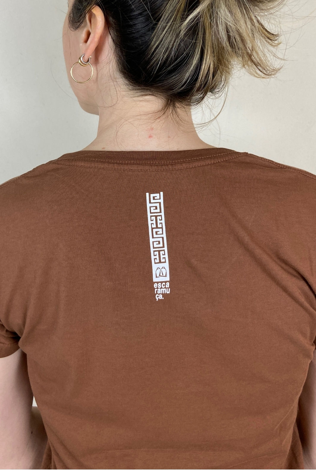 Em tom marrom terroso, com visual aconchegante e profundo, essa camiseta carrega não só uma estampa, mas uma história.