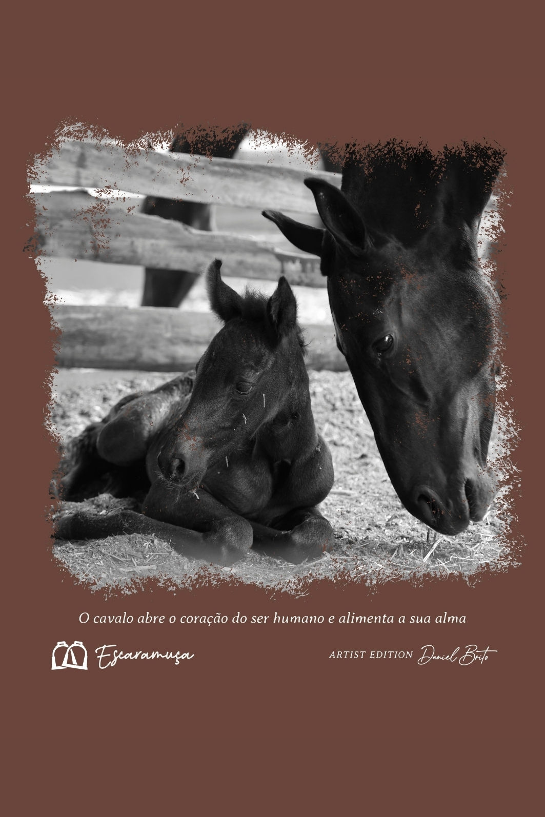 Existem imagens que dizem tudo sem precisar de legenda. A camiseta Amor eterniza um momento de ternura entre uma égua e seu filhote — capturado com sensibilidade pelo fotógrafo Daniel Brito. Uma peça da linha Artist Edition feita para escaramuçadoras que reconhecem a força do instinto e da maternidade no universo equestre.
