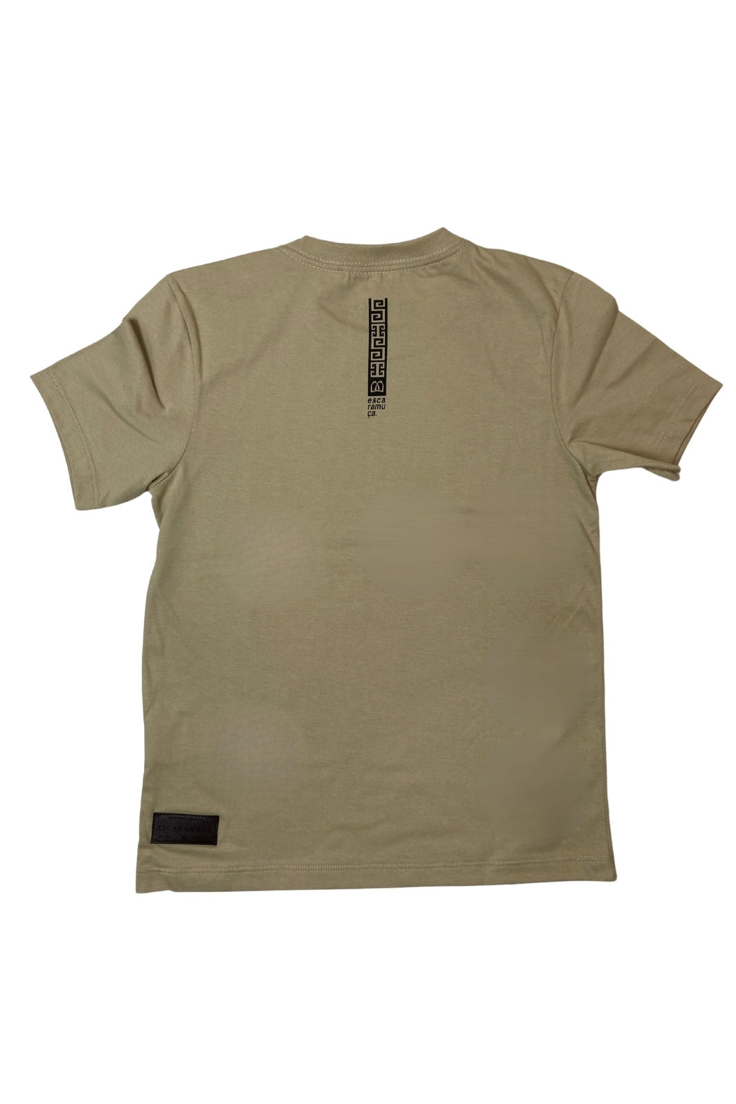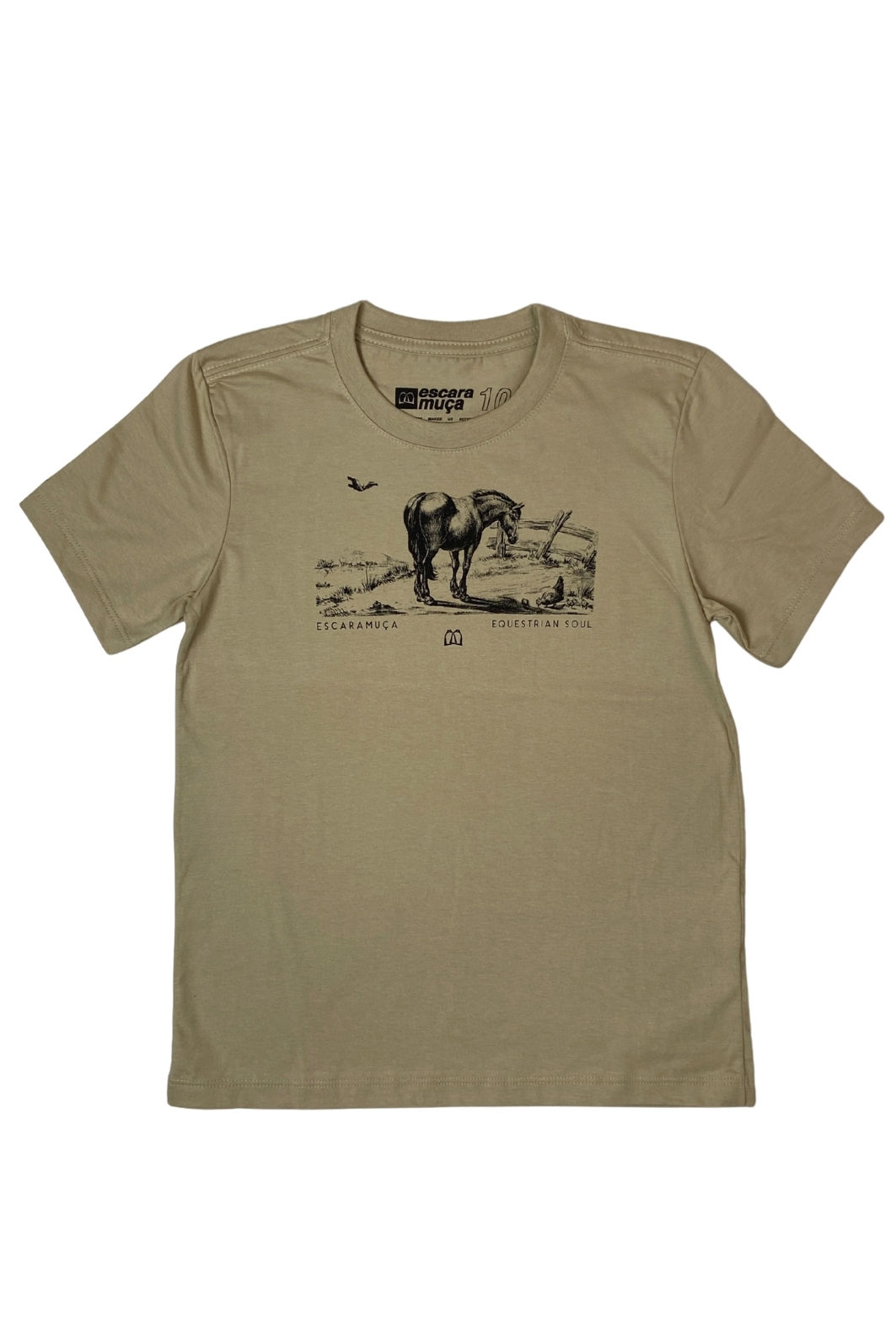 A versão infantil da camiseta Paz Rural traz toda a serenidade e conexão com a natureza, agora pensada para o conforto e estilo das crianças. Em tom amêndoa suave e com a mesma estampa delicada da peça feminina, essa camiseta é ideal para criar aquele combo mãe e filhos cheio de significado.